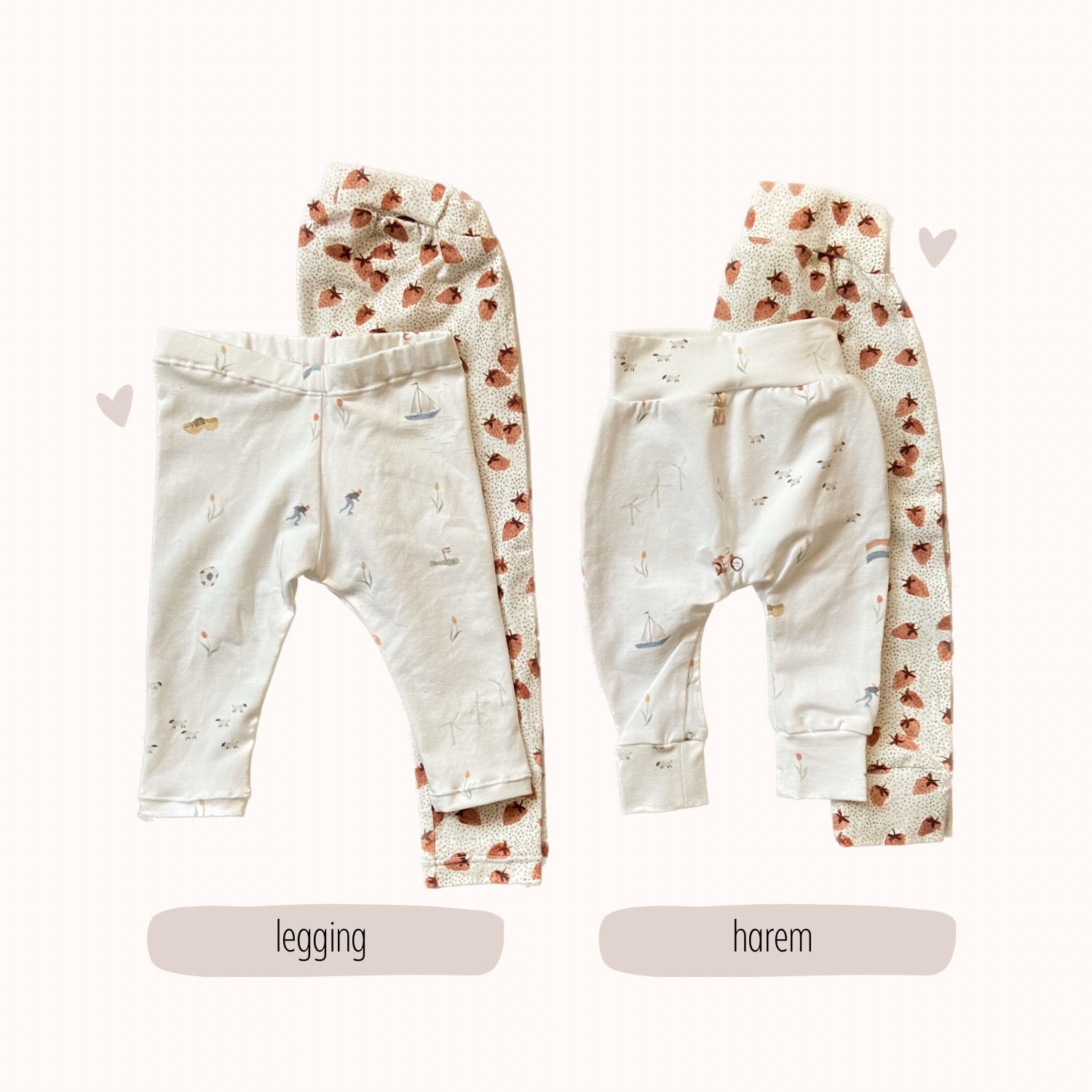 Voor dit broekje kun je kiezen uit twee verschillende modellen, namelijk: een leggingbroekje of een harembroekje.