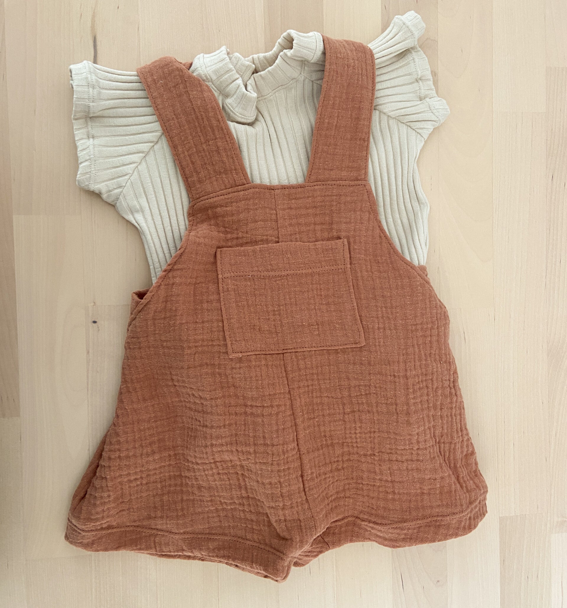 Een zomers tuinbroekje gemaakt van hydrofiele stof. Het tuinbroekje valt oversized en leuk met een trui, tshirtje of alleen een rompertje. De hydrofiele stof maakt het broekje lekker luchtig. De bandjes van de tuinbroekjes zijn aan de achterkant verstelbaar op twee lengtes.